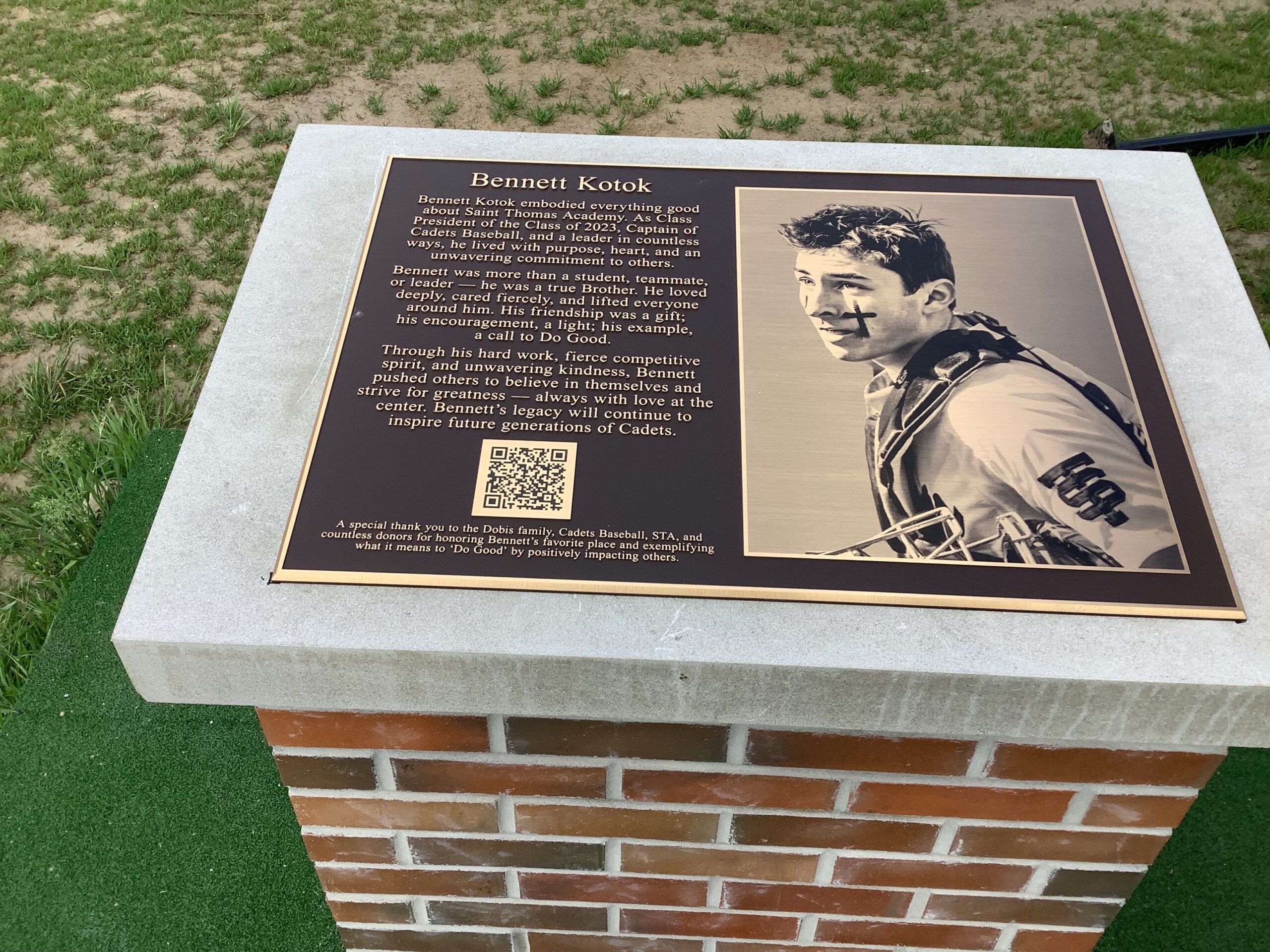 Photo #1 Photo engraved bronze plaque Harry Agganis Square. Flat band border, oxidized background, concealed mounting.