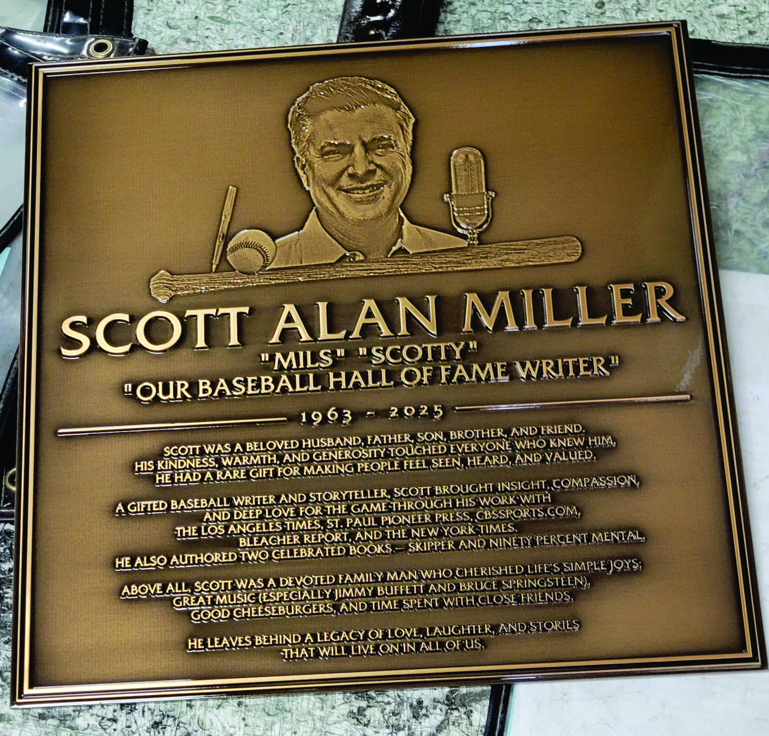 Yankees Plaque Cast bronze plaque with a custom leaf border and sculpted portrait