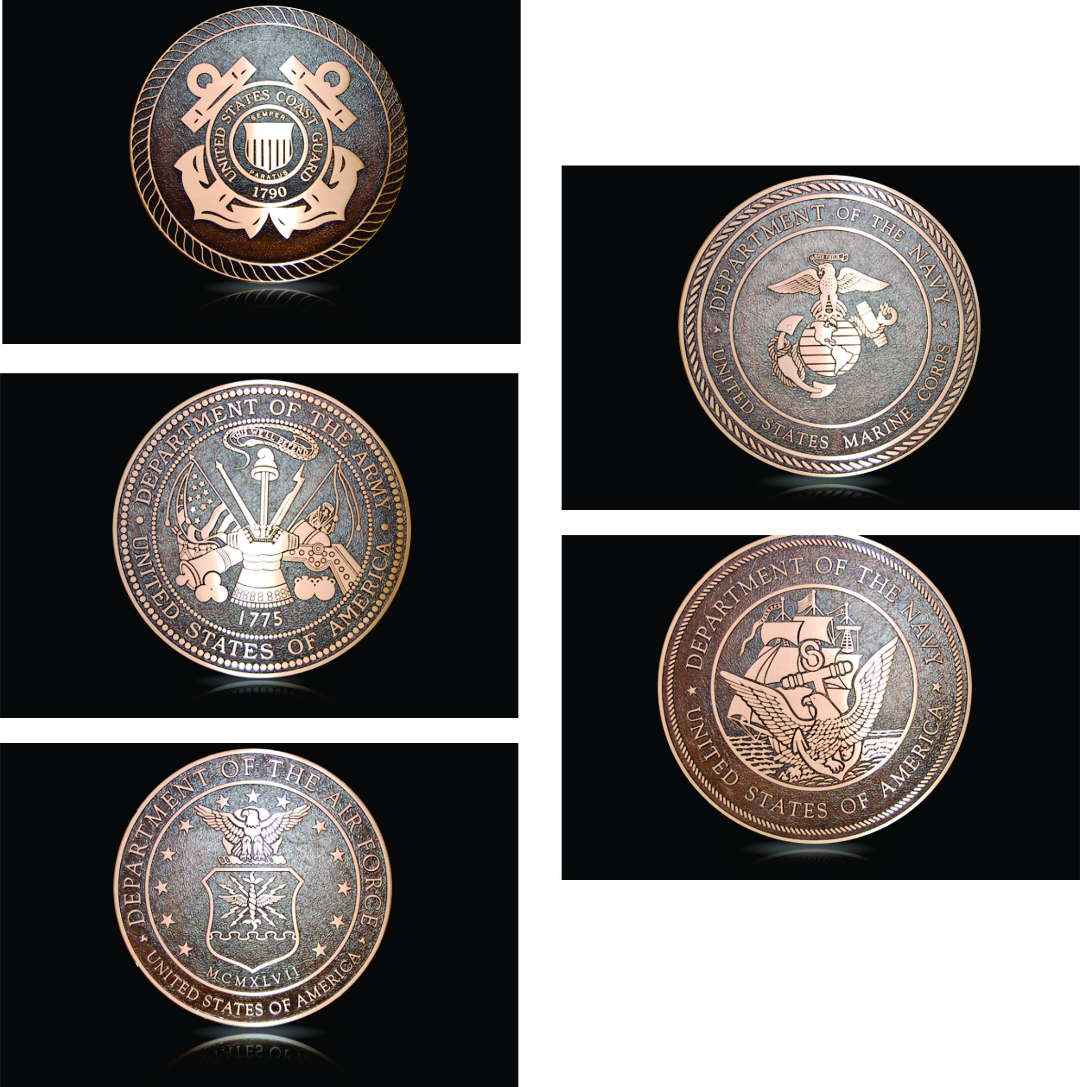 Metal Designs proudly is the leading supplier of sculpted and cast bronze military seals that are fully approved by the Veterans Administration. We salute them for their service and sacrifice by crafting impactful plaques and seals for all branches of the United States military. All of our custom plaques and seals are made with great care and always to the exact specifications of our customers to create a befitting memorial or homage that honors our armed forces currently serving and our veterans who have already served this country.